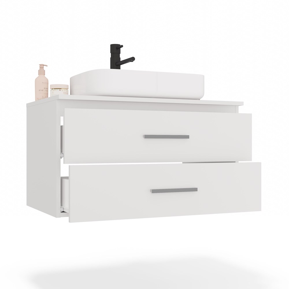 NEL 80 je praktická koupelnová skříňka, která se skvěle hodí do moderních interiérů, jak středně velkých, tak i menších. Nábytek je vybaven dvěma prostornými zásuvkami, ideálními pro ukládání kosmetiky, ručníků či jiných koupelnových doplňků. Obě zásuvky mají plnou hloubku – nejsou opatřeny výřezem na sifon. Použití nástěnného sifonu umožňuje plně využít jejich prostor. Skříňka je navržena jako základ pod umyvadlo na desku (umyvadlo není součástí sady – je třeba jej vybrat samostatně podle vlastních preferencí). Hlavní vlastnosti produktu: 2 funkční zásuvky bez výřezů – maximální kapacita, doporučený nástěnný sifon Možnost zavěšení v libovolné výšce – úspora místa Šířka 80 cm – ideální pro střední a větší koupelny Hladké boky a čela bez zbytečných otvorů – čistá estetika Ideální pod umyvadlo na desku (není součástí sady) Materiály: Korpus a čela: laminovaná dřevotříska 16 mm Úchytky: plast, barva stříbrná/matná Pojezdy: kovové, válečkové Celkové rozměry: Šířka: 80 cm Výška: 45 cm Hloubka: 50 cm Montáž a údržba: Nábytek určený k samostatné montáži – součástí balení je kompletní sada příslušenství a návod Povrch nábytku čistěte měkkým, vlhkým hadříkem, vyhněte se silným čisticím prostředkům Sada neobsahuje umyvadlo ani umyvadlovou baterii.