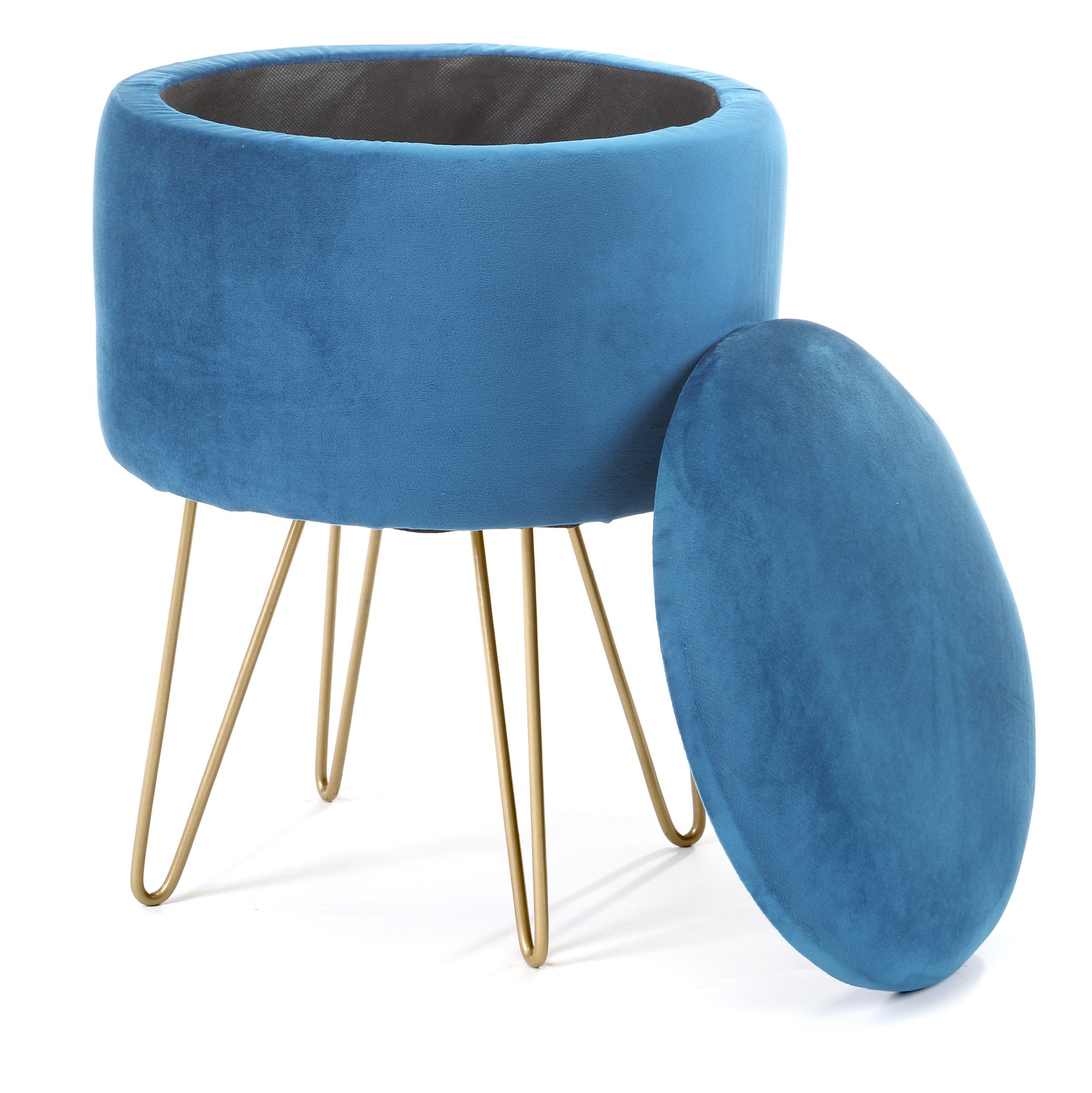 Taburet s úložným prostorem na zlatých kovových nohách je stylovým a funkčním doplňkem do obývacího pokoje i ložnice. Skvěle poslouží jako pohodlná podnožka, díky které si mohou unavené nohy po celém dni chůze dopřát zasloužený odpočinek. Měkký velurový potah navíc umocňuje příjemné pocity při relaxaci.