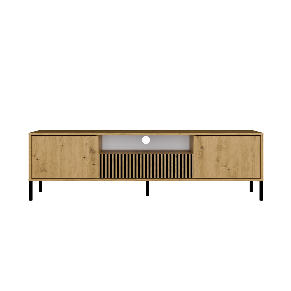 DESIGN A FUNKČNOST TV stolek KAMARO je ideálním řešením pro ty, kteří oceňují moderní styl a praktické využití. Minimalistická konstrukce a drážkovaná čela mu dodávají jedinečný charakter, zatímco promyšlené uspořádání polic a skříněk umožňuje pohodlné ukládání a organizaci prostoru.