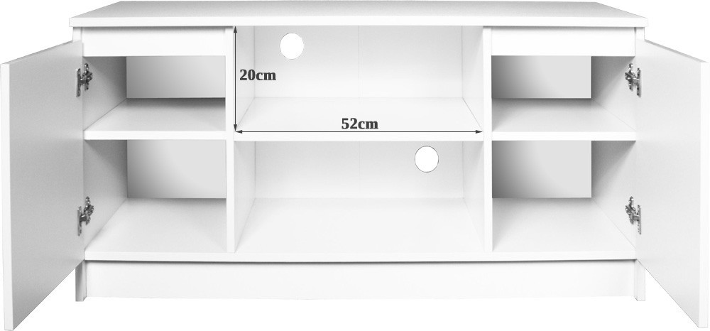TV stolek je navržen s důrazem na praktičnost a každodenní používání. Disponuje dvěma uzavíratelnými skříňkami, přičemž uvnitř každých dvířek se nachází jedna police. Otevřený prostor uprostřed slouží k umístění dekodéru, audio techniky nebo herní konzole a bez problémů pojme téměř všechny běžně dostupné modely.
