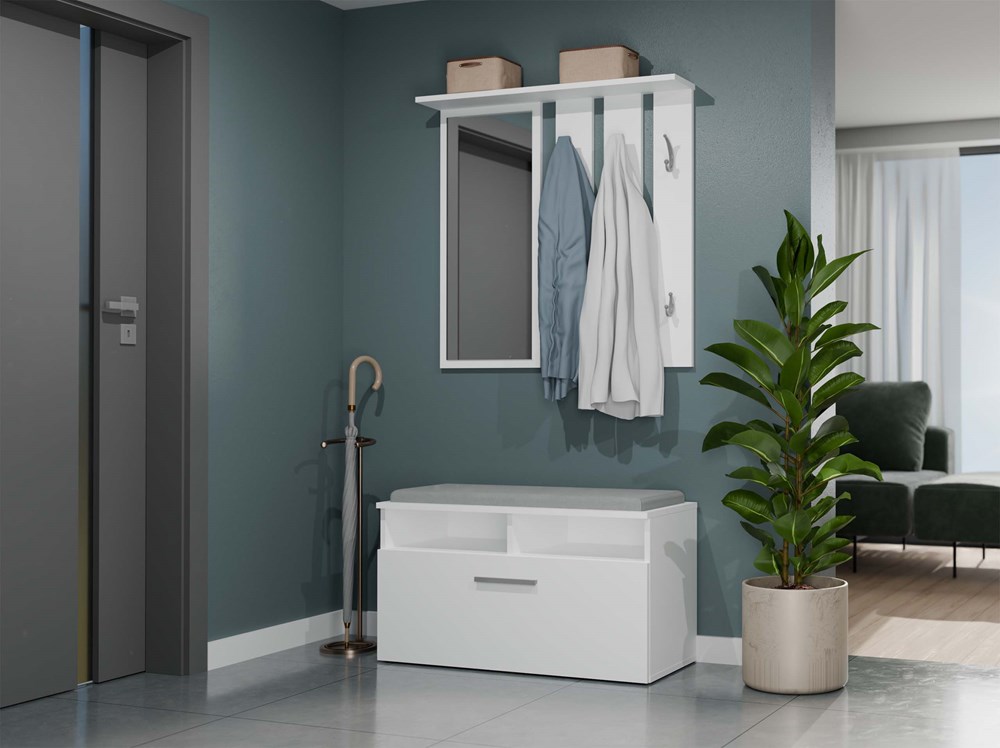 VĚŠÁK S POLIČKOU, ZRCADLO S POLIČKOU MODEL: OPALKOLOR: MATNÁ BÍLÁ velké praktické poličky 6 věšáků na oblečení Praktický věšák a zrcadlo do vaší předsíně. Nábytek je ideální do malých i velkých prostor. Má 6 velkých dvojitých háčků. V NABÍDCE MÁME NAVÍC SKŘÍŇKU S SEDÁNKEM OPAL, DÍKY ČEMU MŮŽETE V PŘEDSOBY VYTVOŘIT PRAKTICKOU ŠATNU.
