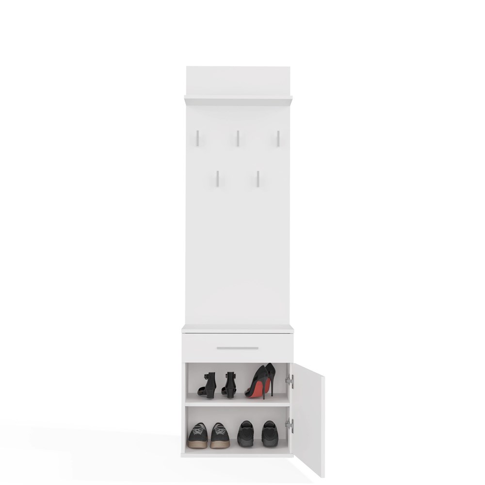 Botník s věšákem DUO – matná bílá