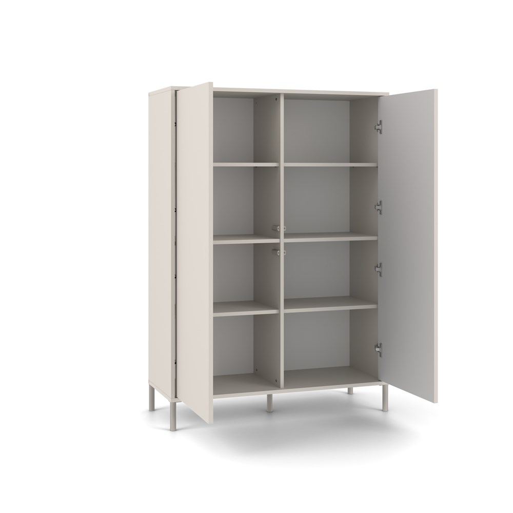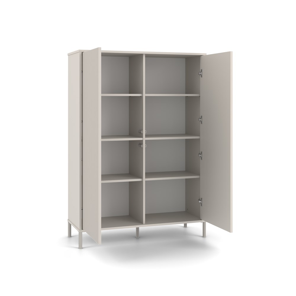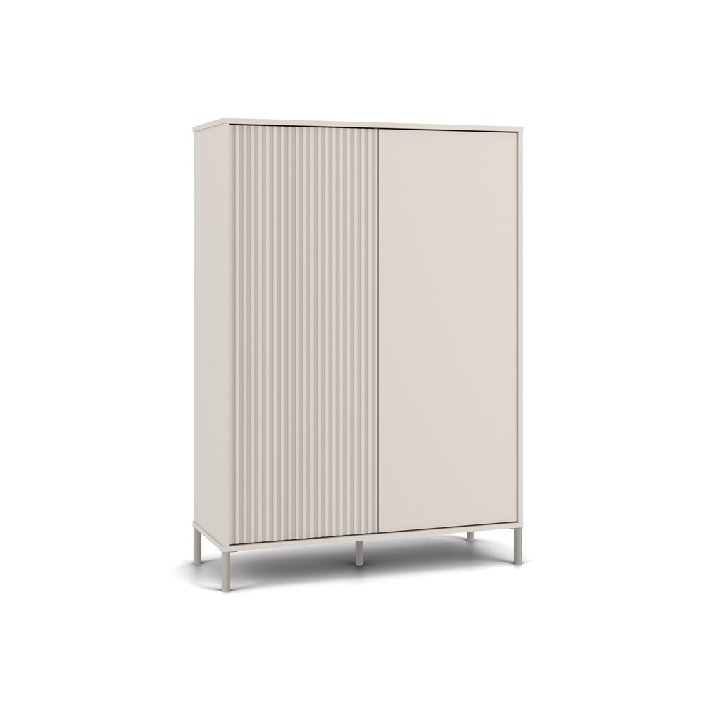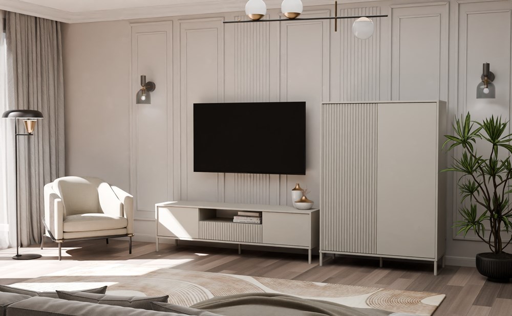 STYLOVÁ VITRÍNA S 2 DLOUHÝMI DVEŘMI SÉRIE: KAMARO MODEL: KAMARO 2DD SLIM/HLAVNÍ Styl a funkčnost v moderním provedení BARVA: Korpus: Kašmír Čelo: Kašmír (hladký) / Kašmír (rýhovaný) Nohy: Kašmír (Elegantní a stylový odstín béžové) ELEGANCE A PRAKTICKOST V JEDNOM Vitrína KAMARO 2DD SLIM/HLAVNÍ KASZMIR je kombinací estetiky a funkčnosti, která se perfektně hodí do obývacího pokoje, společenské místnosti, ložnice nebo pracovny. Kombinace dveří s hladkým čelem a dveří s rýhovaným čelem připomínajícím lamely dodává moderní vzhled a systém TIP-ON umožňuje pohodlné používání bez úchytek. Nábytek poskytuje dostatek úložného prostoru a zároveň představuje stylový akcent v moderním interiéru. Povrchová úprava nábytku v módní barvě Kaszmir (elegantní odstín béžové) dodává interiéru eleganci a moderní charakter, přičemž zachovává neutralitu, která se snadno hodí k různým dekorativním stylům. HLAVNÍ VLASTNOSTI NÁBYTKU: Dvě nezávislé čelní strany dveří: hladká a rýhovaná, každá se otevírá kliknutím díky systému TIP-ON Promyšlená konstrukce: 8 prostorných polic pro úložný prostor Kovové nohy: výška 13,5 cm – stabilita a lehkost konstrukce Moderní styl: hodí se do skandinávských, loftových a industriálních interiérů Snadná montáž: srozumitelný návod a sada příslušenství v balení Kolekce KAMARO – vytvořte jednotný interiér Vitrína KAMARO 2DD SLIM/HLADKÁ se skvěle hodí k ostatním nábytkům z kolekce KAMARO, jako je TV skříňka, komoda nebo ostatní vitríny. Vytvářejte harmonické kombinace, přizpůsobené vašim potřebám a životnímu stylu!