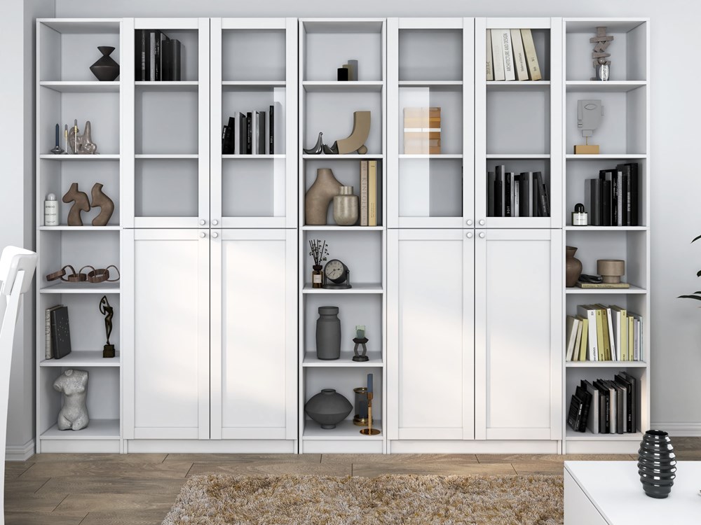 Klasická vysoká vitrína / kancelářská skříň je ideálním řešením pro uložení knih, hraček, pořadačů a firemních materiálů. Nábytek byl vyroben z pevné a odolné laminované desky.