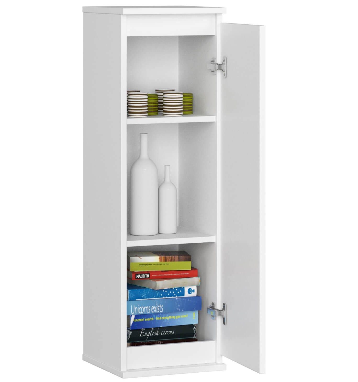 Uvnitř vitríny se nachází tři praktické police, které umožní přehledné uložení knih, dekorací, dokumentů, drobností nebo kancelářských potřeb. Díky dvířkům zůstane vše skryto před prachem a interiér bude působit uklizeně.