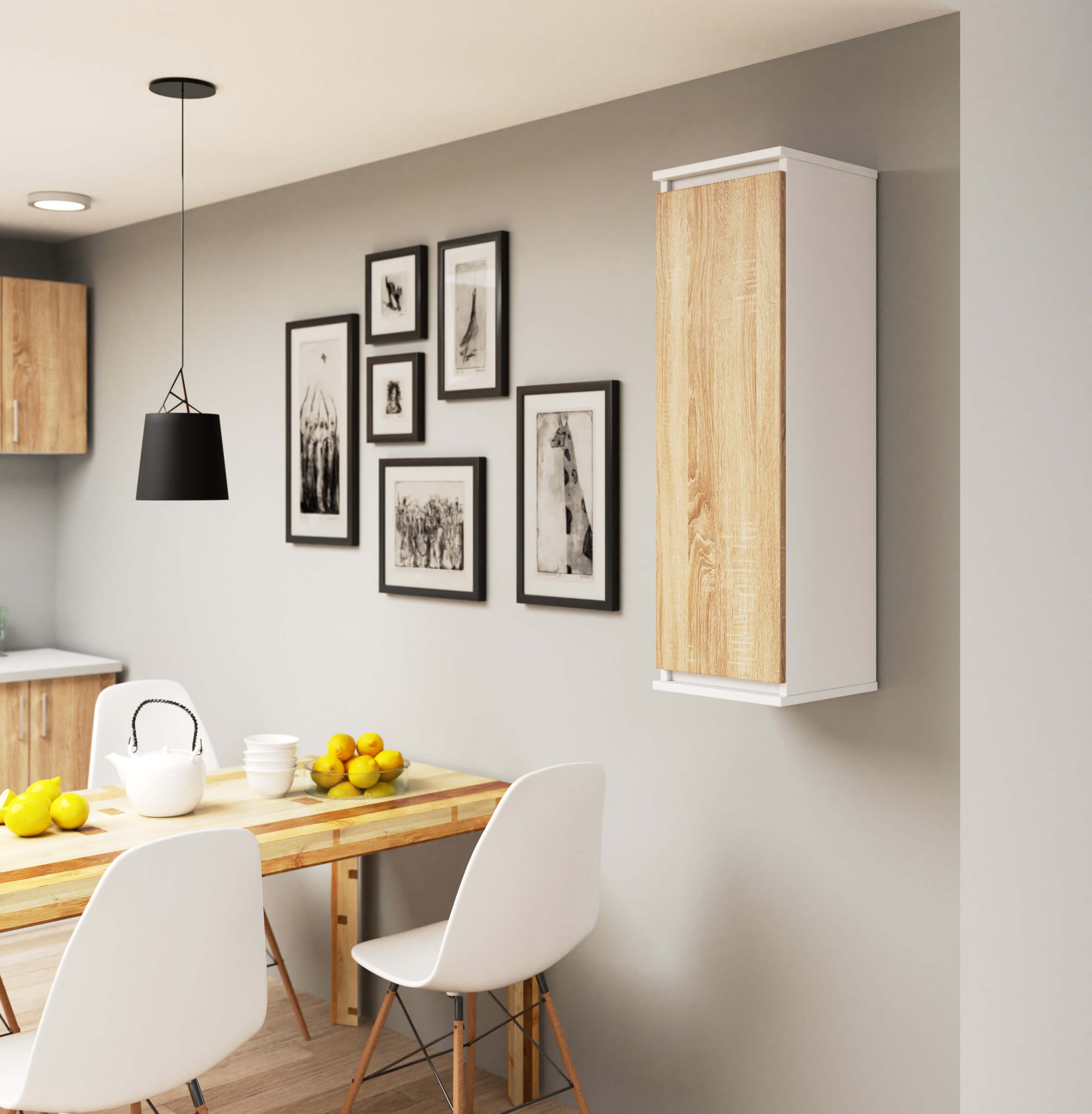 Díky své úzké šířce 30 cm se hodí i do menších místností, kde šetří prostor a zároveň poskytuje překvapivě mnoho úložných možností.