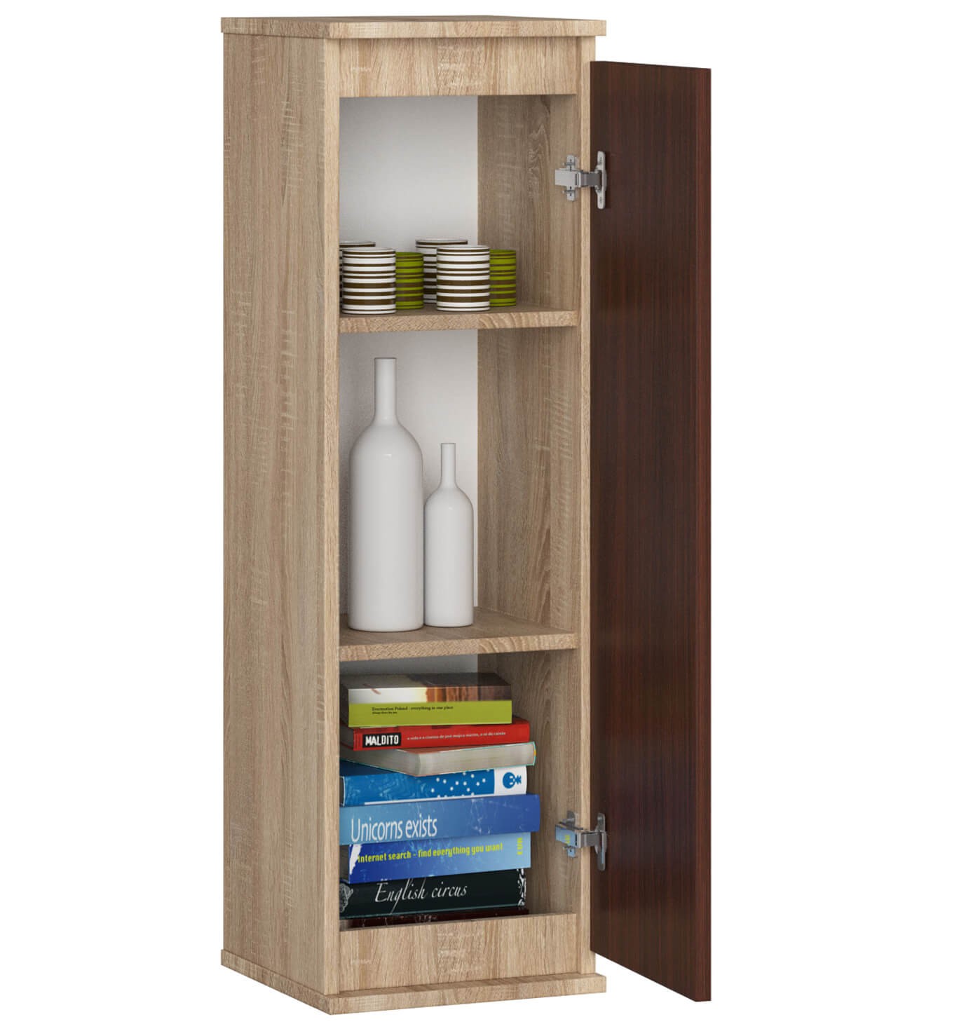 Vitrína W30 CLP v kombinaci dekorů dub sonoma a tmavý venge představuje elegantní a funkční řešení úložného prostoru pro každý moderní domov.