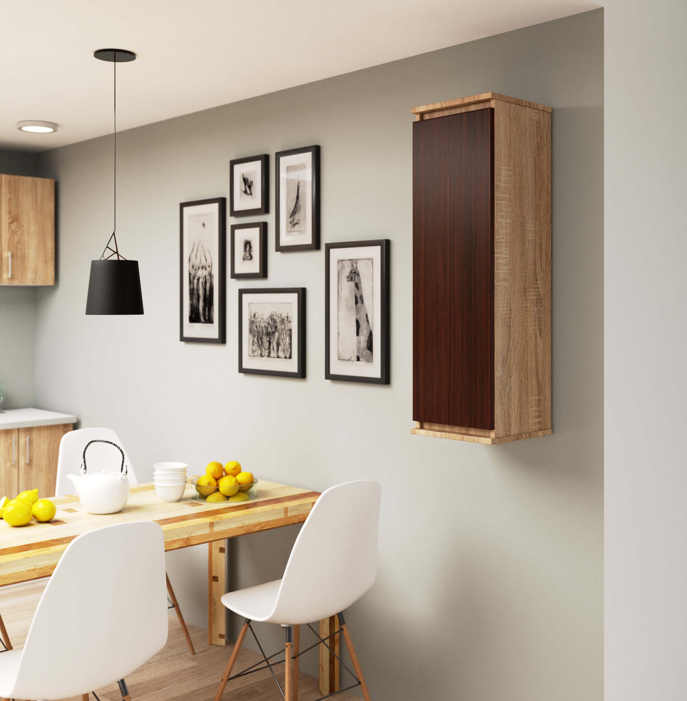 Barevné provedení dub sonoma působí příjemně a přirozeně, zatímco tmavý tón venge dodává nábytku moderní kontrast. Díky tomu vitrína snadno doplní světlé i tmavé interiéry a perfektně zapadne do obýváku, předsíně, ložnice, dětského pokoje nebo pracovny.